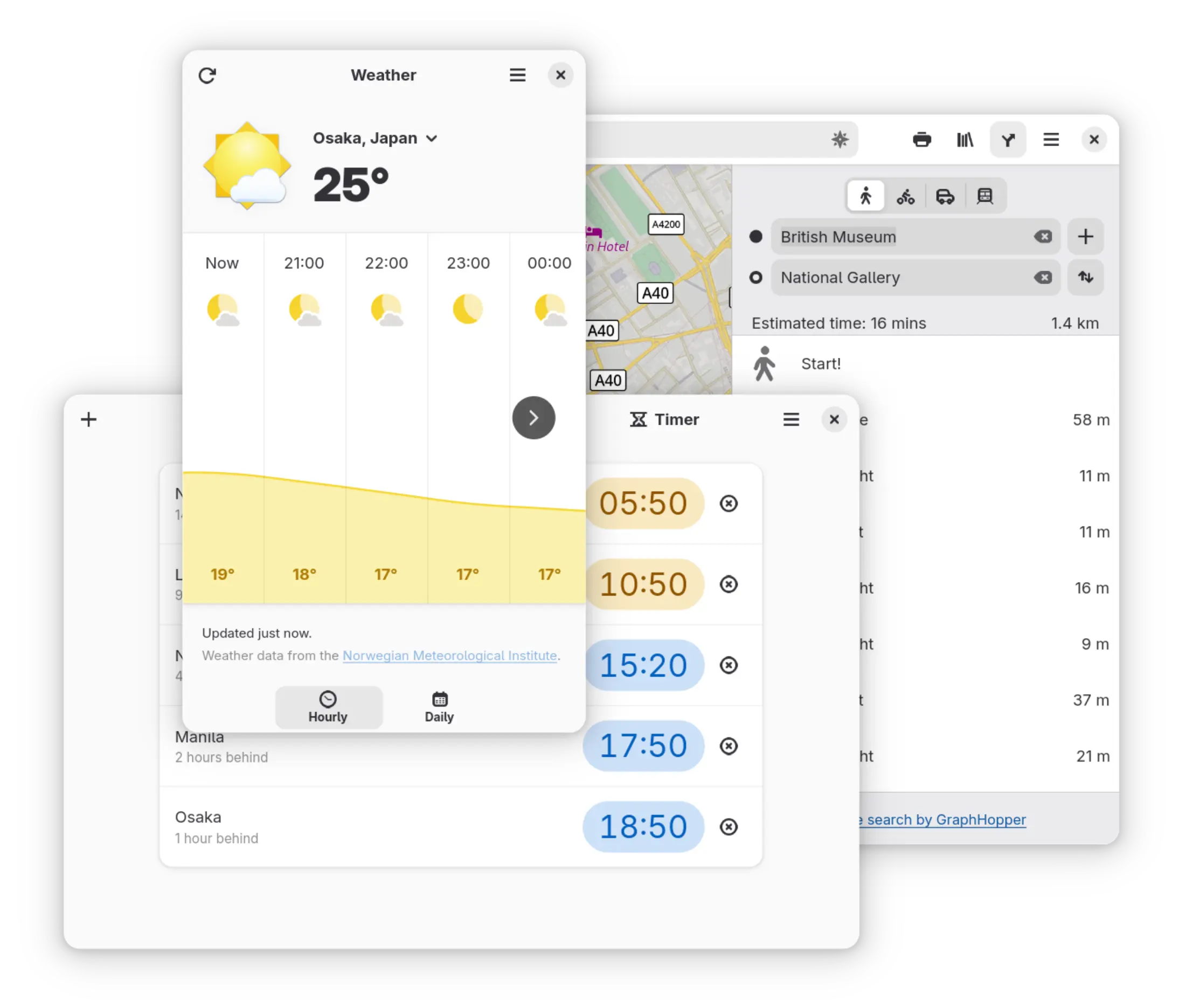 Fedora Workstation includes a great set of utilities, like Clocks, Weather and Maps.